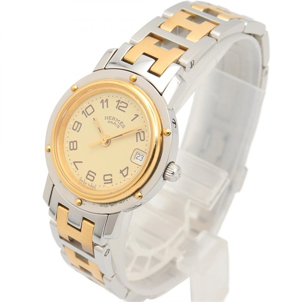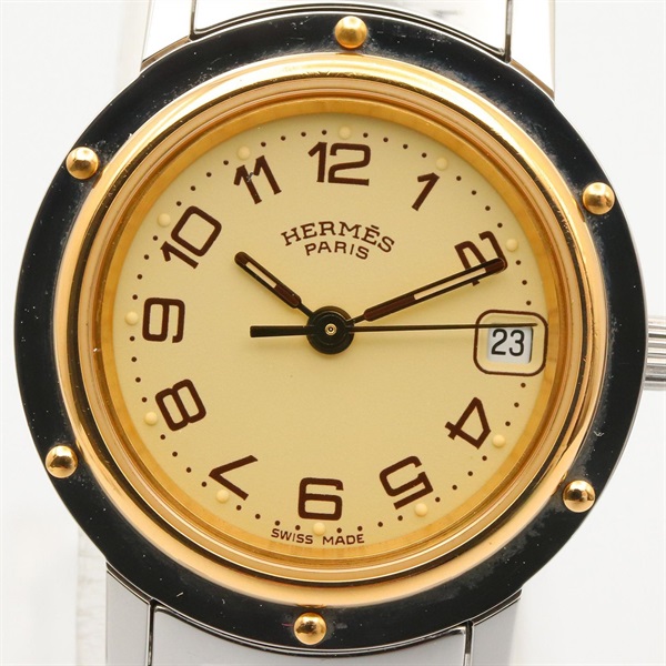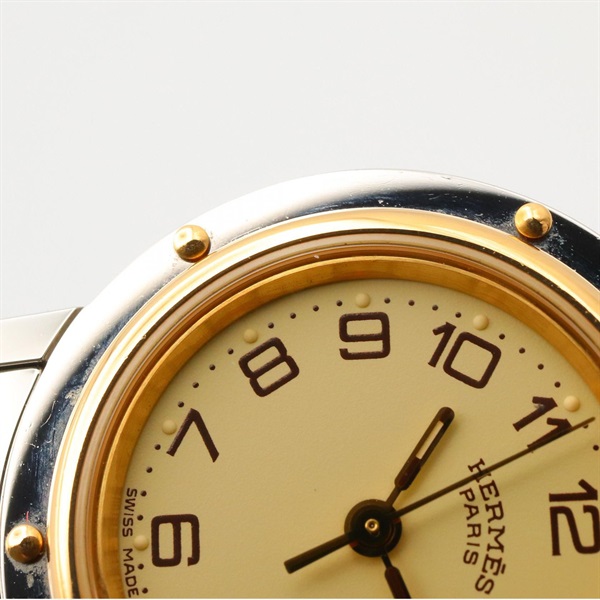 HERMES Clipper Wrist Watch CL4.220 Quartz Gold Plated Stainless Steel Used Women