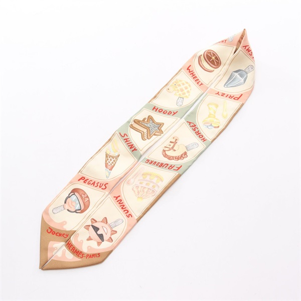 HERMES Twilly Funny Ice Cream Scarf silk Brown Multicolor Used Women