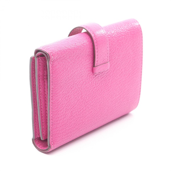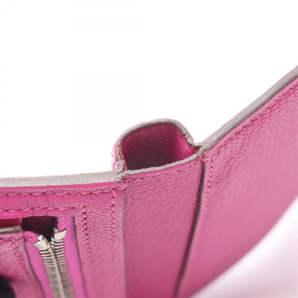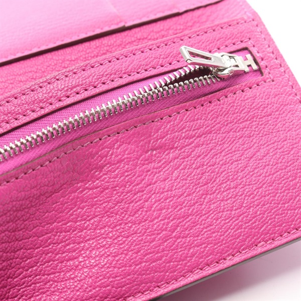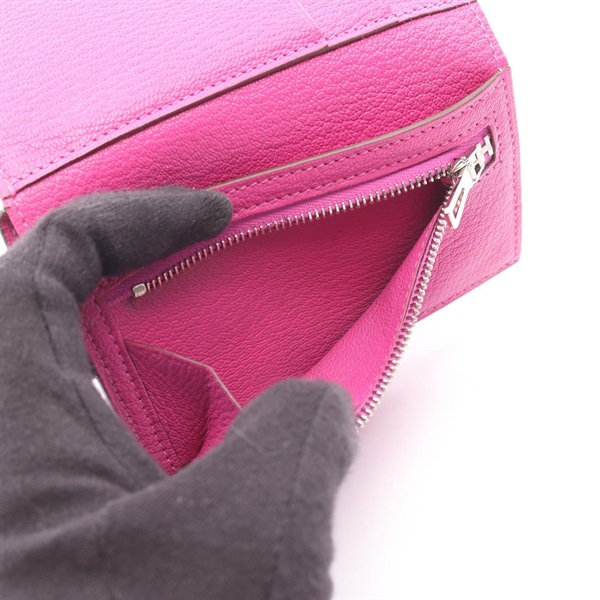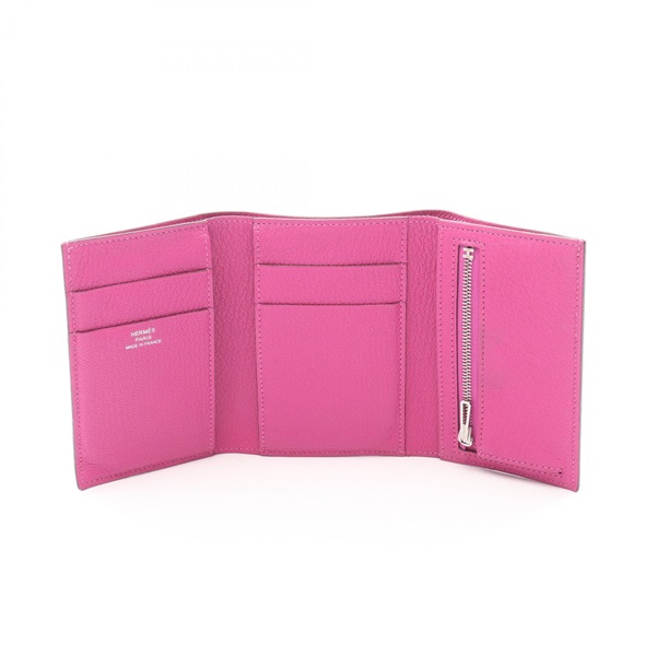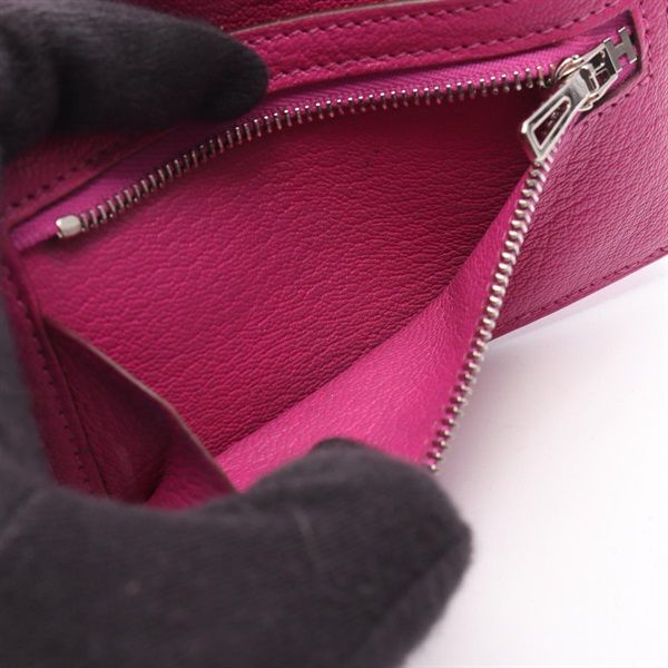 HERMES Bearn combine Tri-fold wallet compact purse U Chevre Rose purple Used SHW
