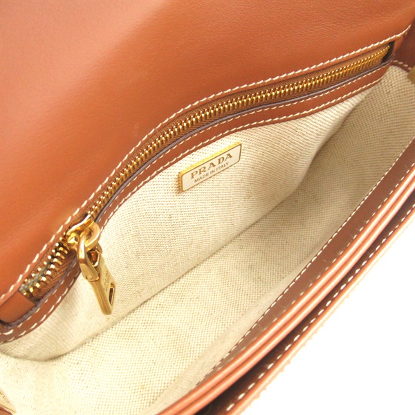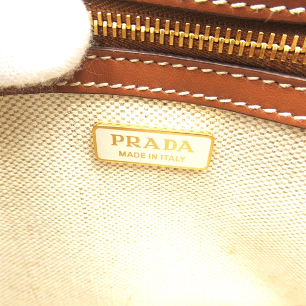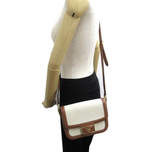 PRADA Shoulder crossbody Bag 1BD257 canvas leather White Brown Used