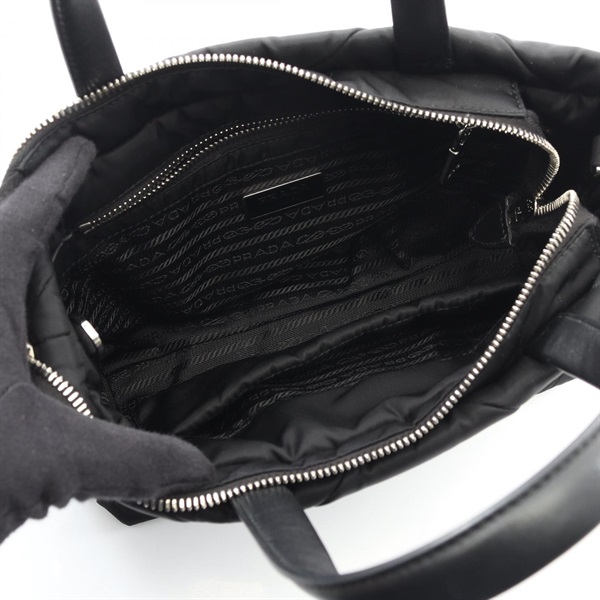 PRADA TESSUTO QUILTIN Re-Nylon padding Tote Handbag Nylon leather Black Used