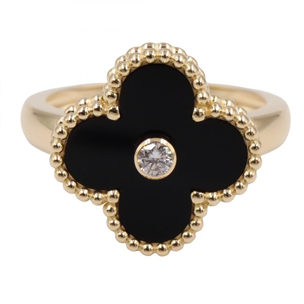 Van Cleef & Arpels Vintage Alhambra Onyx 1PD Ring #6.25 US size K18YG Black Used
