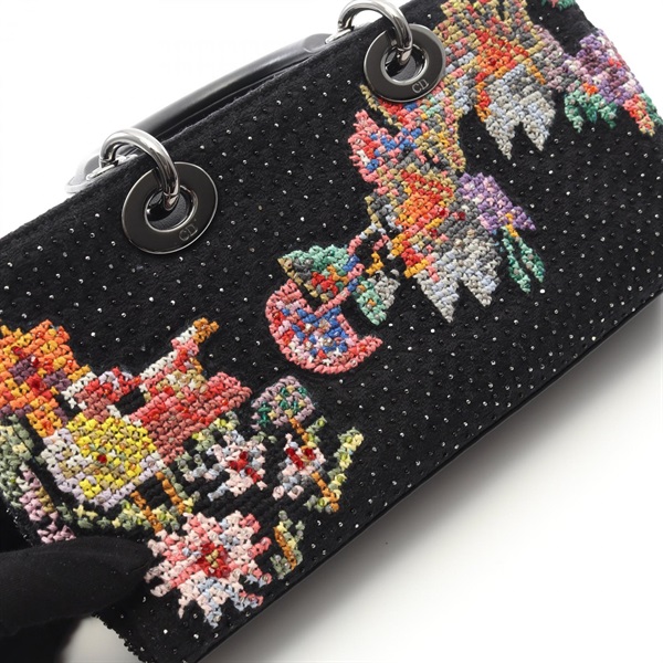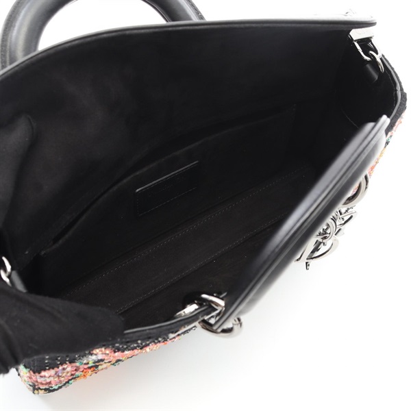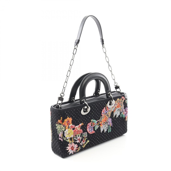 Christian Dior LADY D-JOY Medium 2Way Chain Shoulder Handbag canvas Black Used