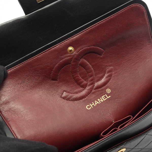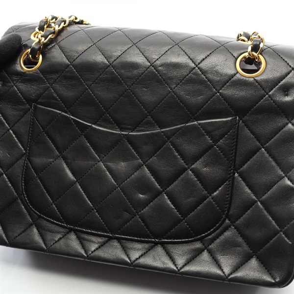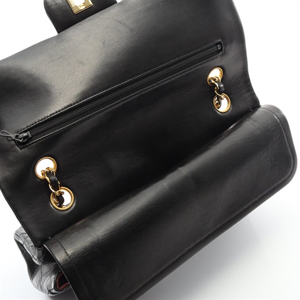 CHANEL Matelasse W flap chain Shoulder Bag A01112 Lambskin leather BK Used GHW