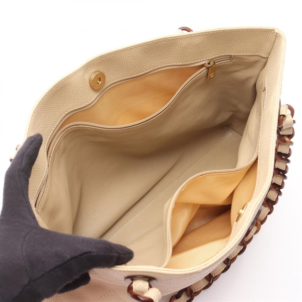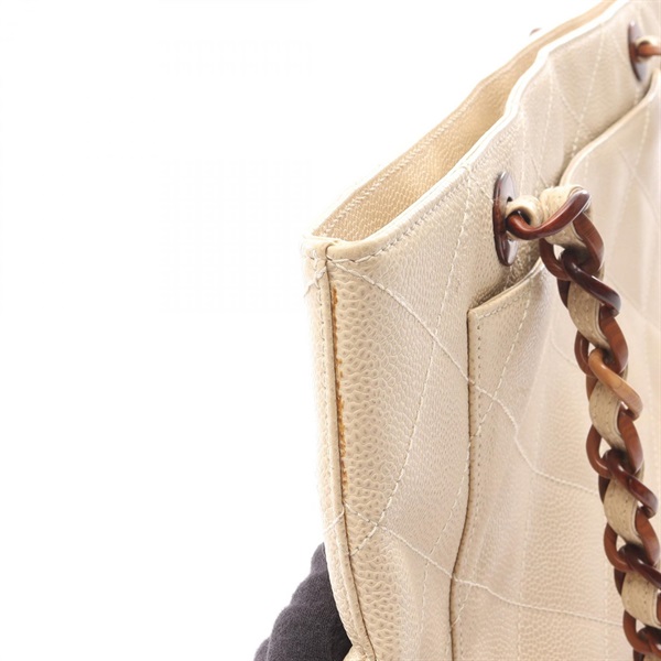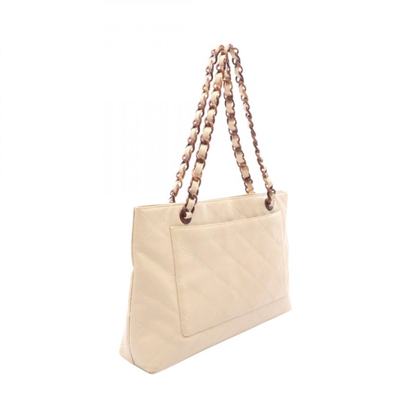 CHANEL Matelasse Chain Shoulder Tote Bag Grained calfskin leather Beige GHW Used