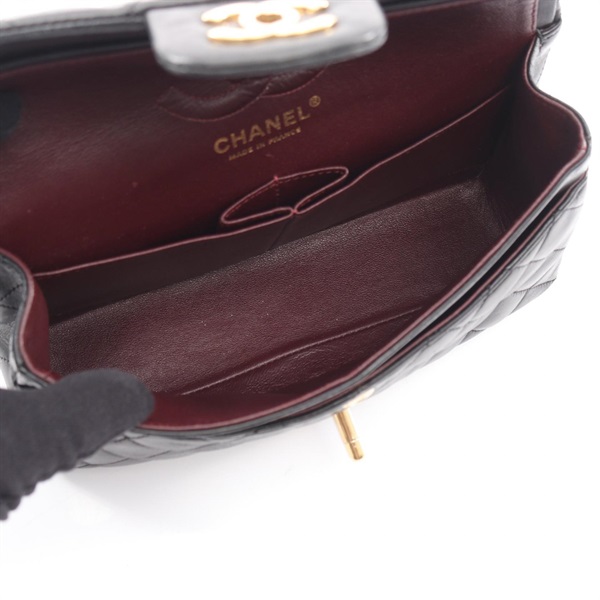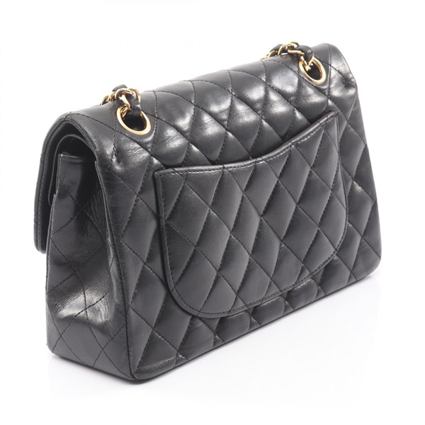 CHANEL Matelasse W flap chain Shoulder Bag Lambskin Black Used Women GHW