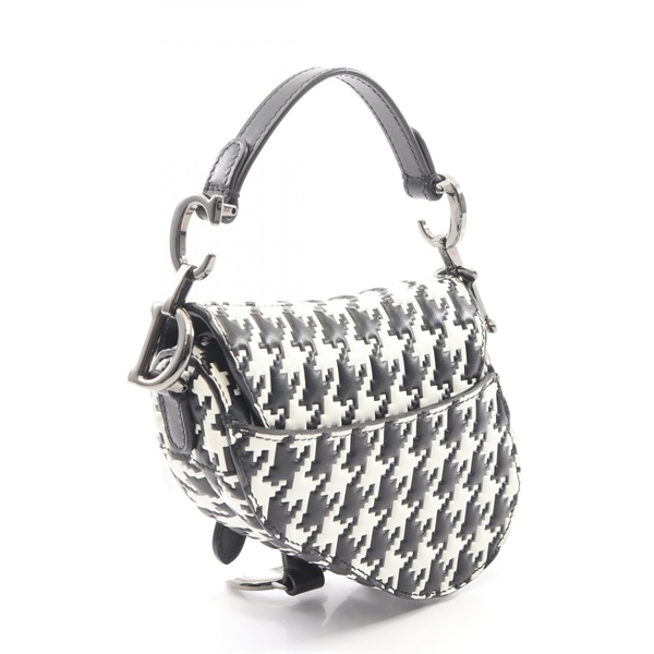 Christian Dior Saddle Micro 2Way Shoulder Handbag leather Black White Used Women