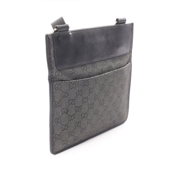 GUCCI GG denim Crossbody Shoulder Bag 27639 leather Black Used Women