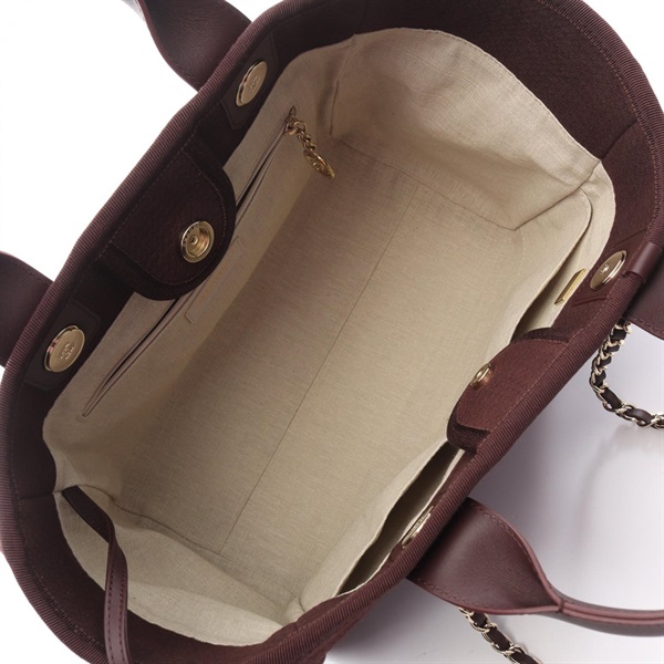 CHANEL Deauville Small Tote chian shoulder Bag AS3257 canvas leather Brown Used