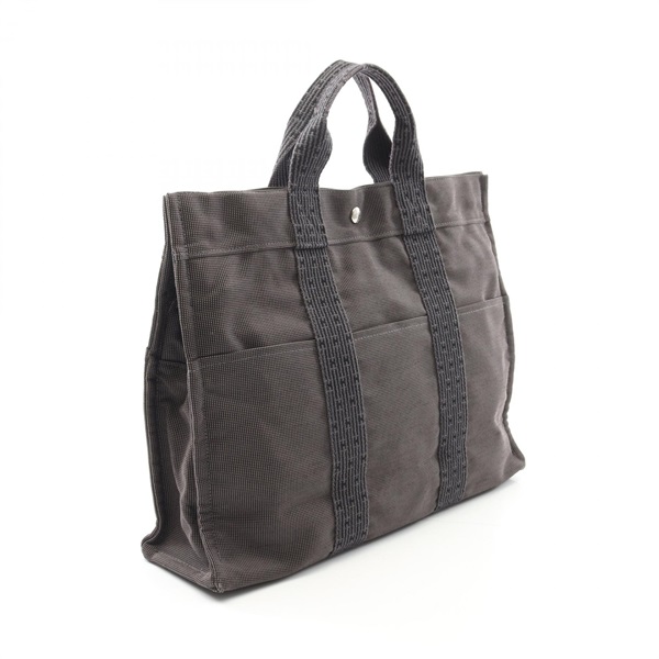 HERMES Herline MM Hand Tote Bag Nylon canvas Gray Used unisex SHW
