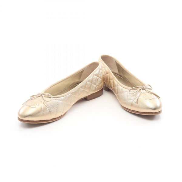 "CHANEL Ballerina Matelasse COCO Mark pumps shoes #37 1/2 leather Gold Used Women" is out of stock.