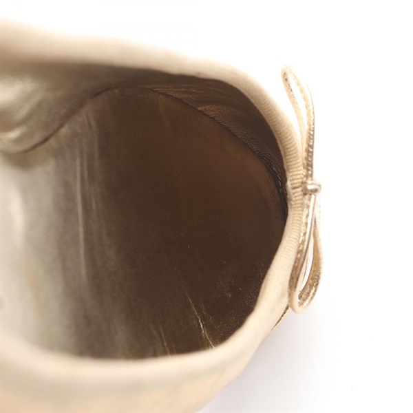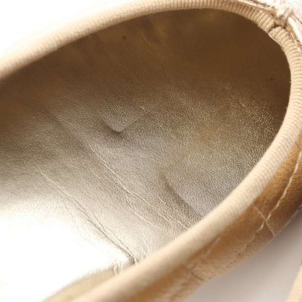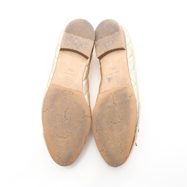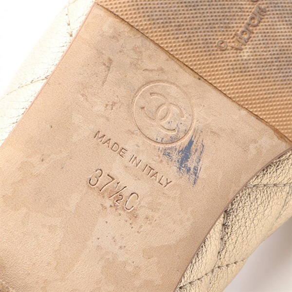 CHANEL Ballerina Matelasse COCO Mark pumps shoes #37 1/2 leather Gold Used Women