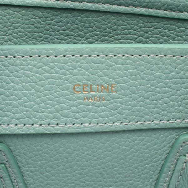 CELINE Luggage Nano Shopper Shoulder Crossbody Handbag leather Green Used Women