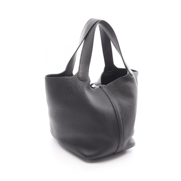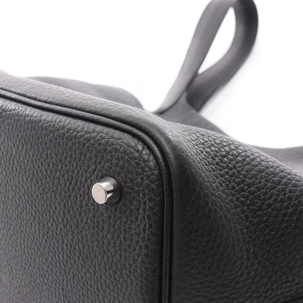 HERMES Picotin Lock MM bucket Tote Handbag Clemence leather Black Used SHW Y