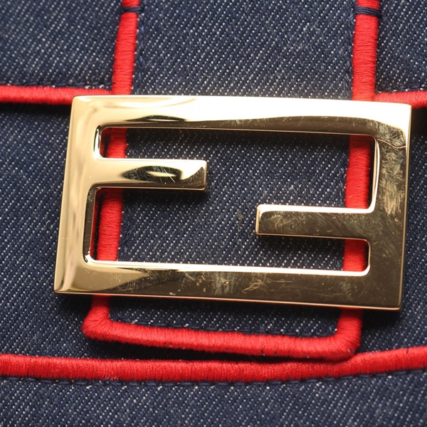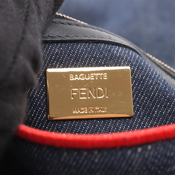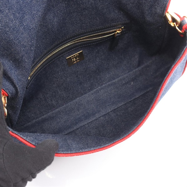 FENDI Mamma Bucket ROMA Shoulder Handbag 8BR771 denim Navy Red Used Women