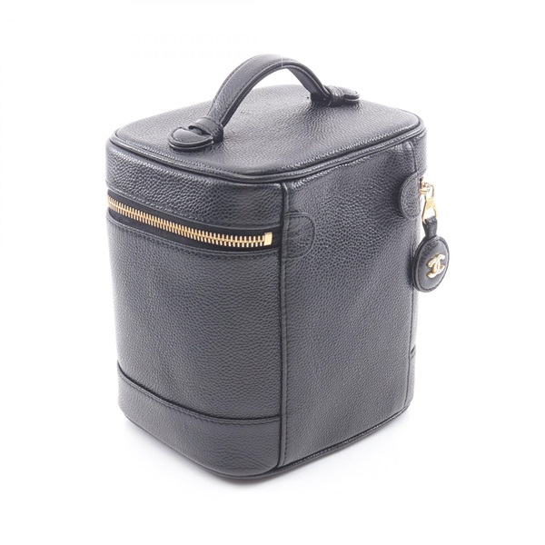 CHANEL COCO Mark vertical vanity Handbag leather Calfskin leather GHW Black Used