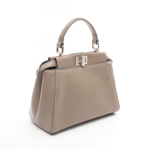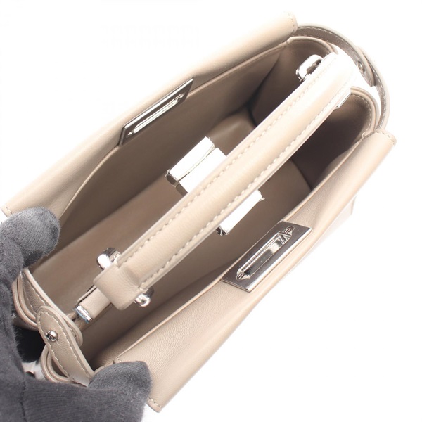 FENDI Mini Peekaboo Shoulder Crossbody Handbag 8BN244 leather Beige Used Women