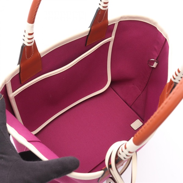 HERMES Steeple 25 Tote Bag U Toile Military Swift leather rose purple cuivre