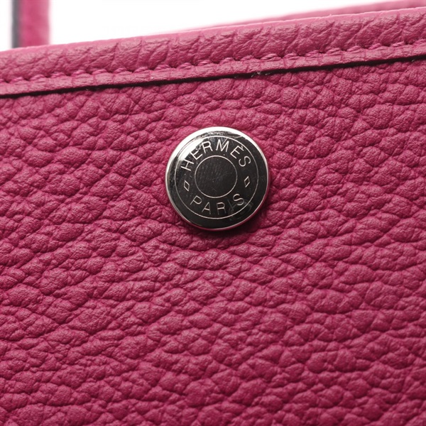 HERMES Garden party PM Tote hand Bag C Country leather Rose purple SHW