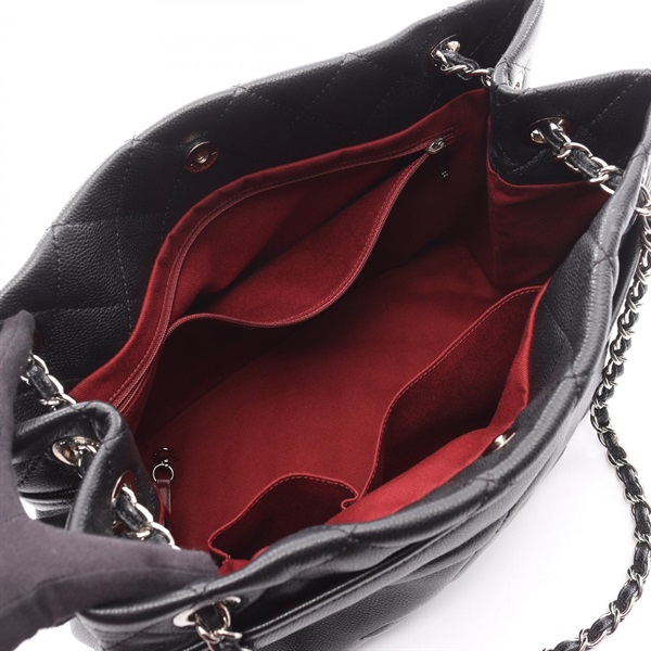 CHANEL Matelasse Shoulder Tote Bag Grained calf leather Black Used Women SHW CC