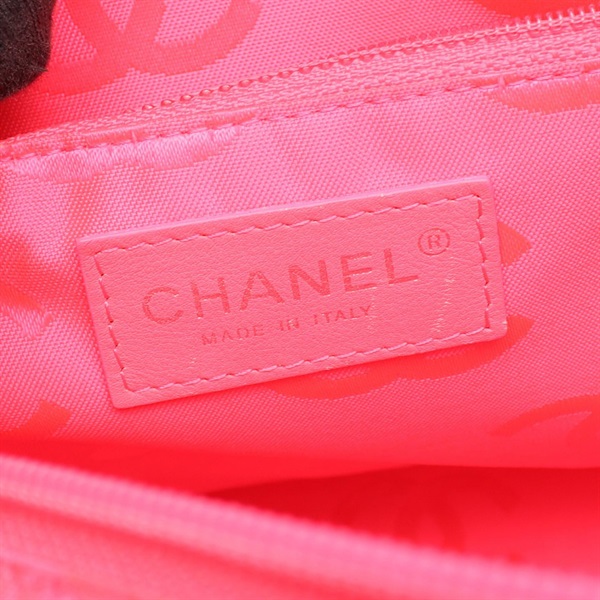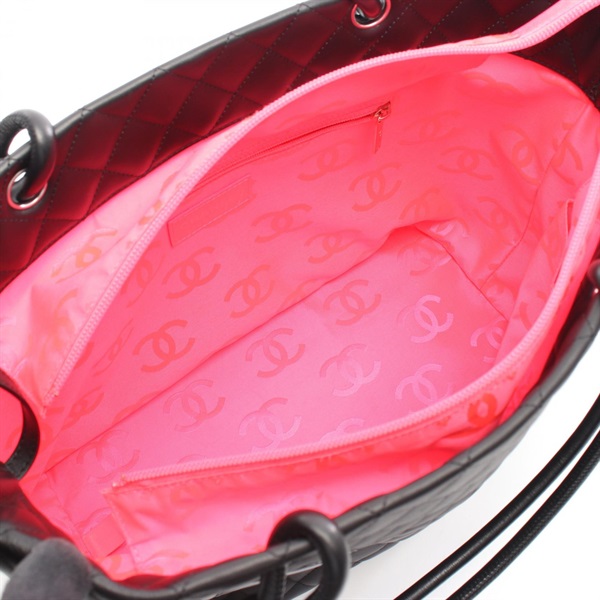 CHANEL Cambon Line Large Shoulder Tote Bag leather Patent Black Pink Used SHW