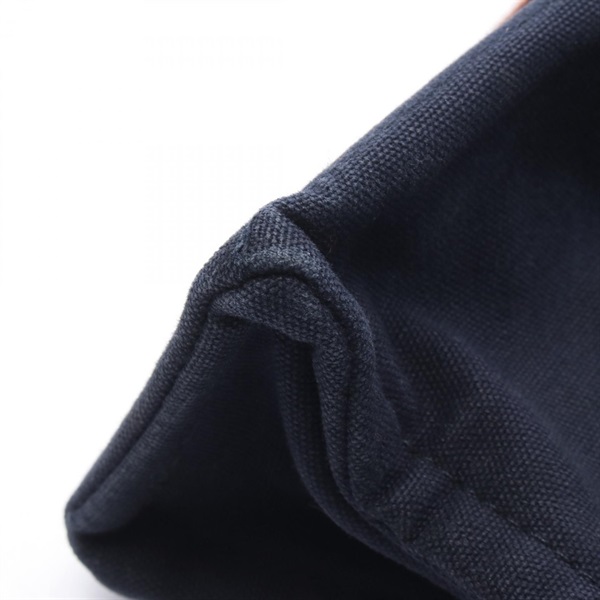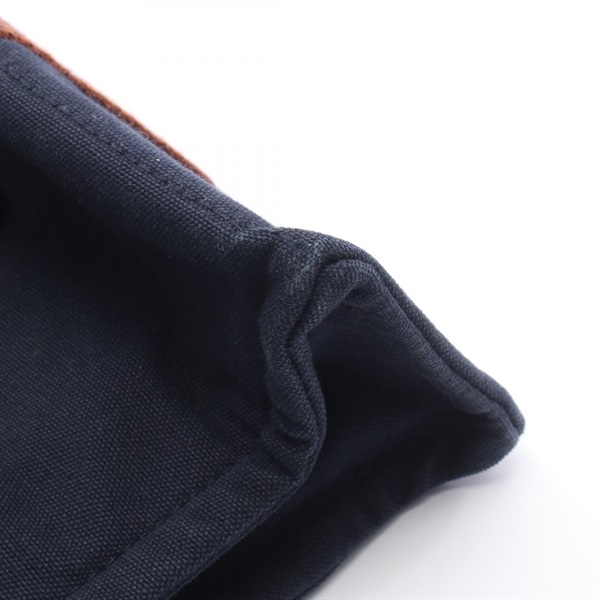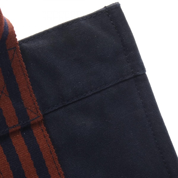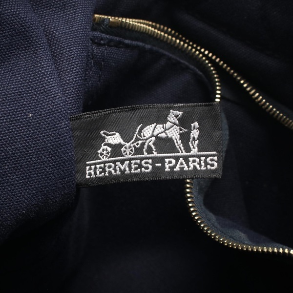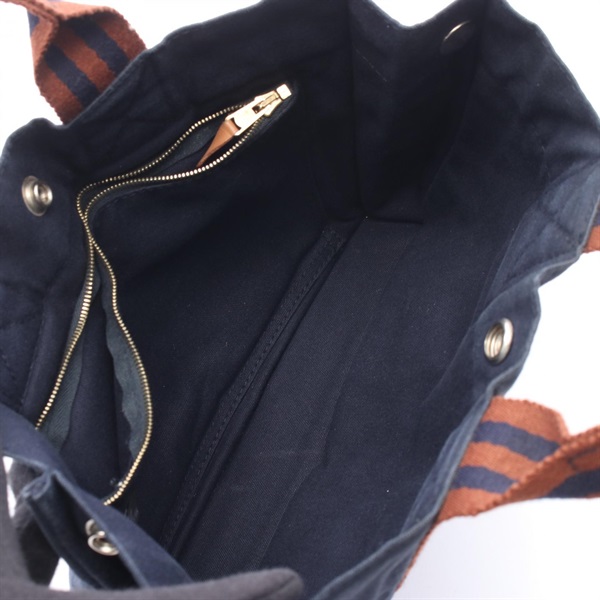 HERMES Fourre-tout PM Tote hand Bag canvas Navy Brown Used SHW Women