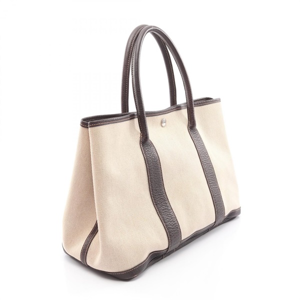 "HERMES Garden party PM Tote hand Bag H Toile H leather Ecru Ebene used SHW" is out of stock.