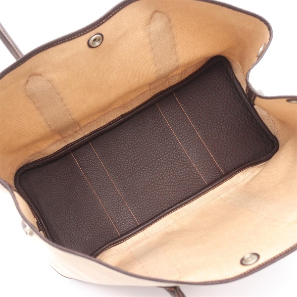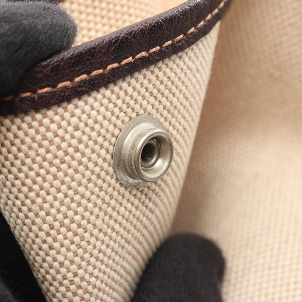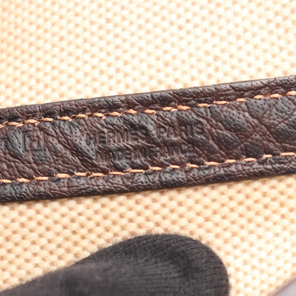 HERMES Garden party PM Tote hand Bag H Toile H leather Ecru Ebene used SHW