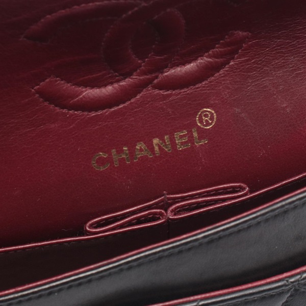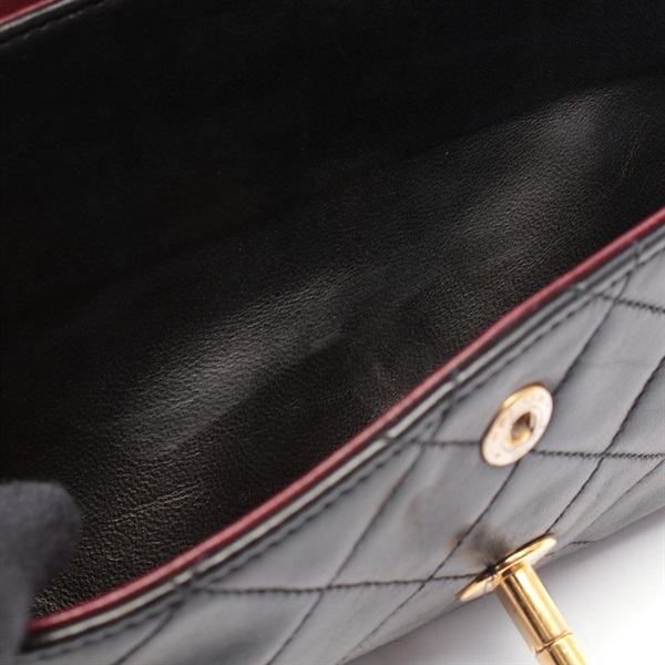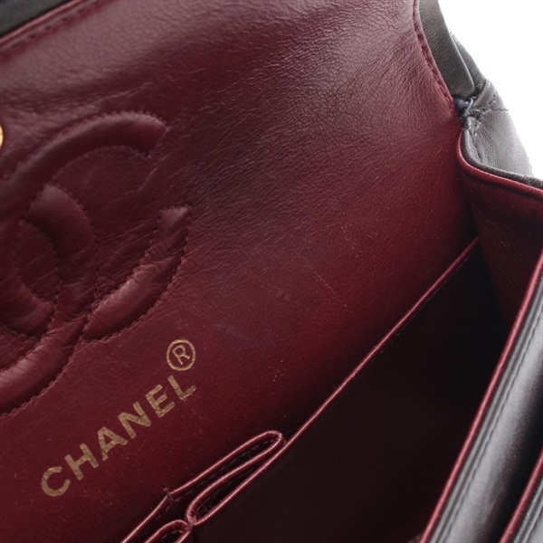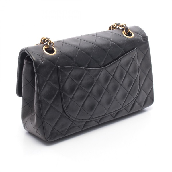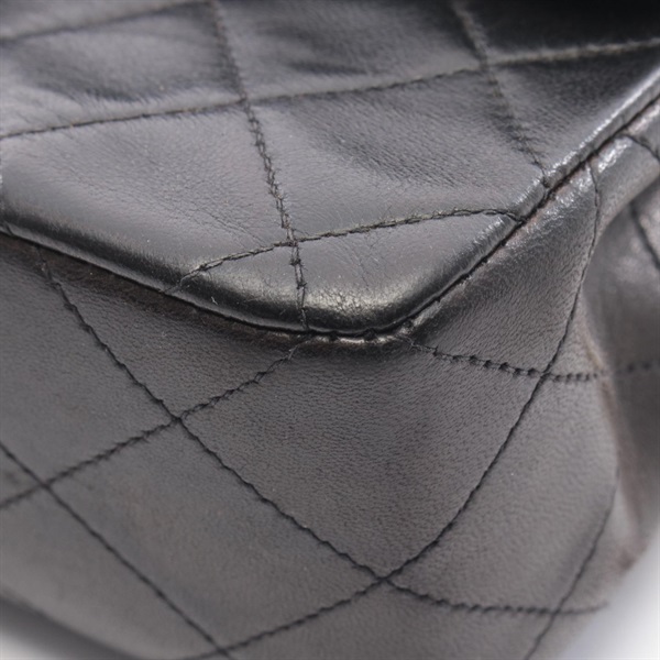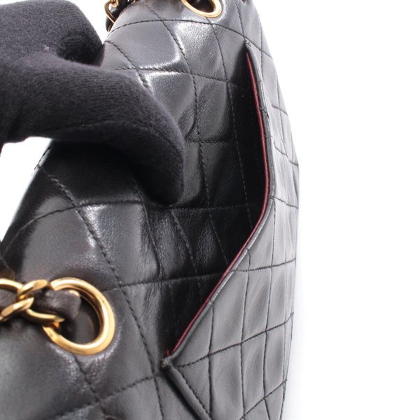 CHANEL Matelasse Double flap Chain Shoulder Bag Lambskin Black GHW Used Women