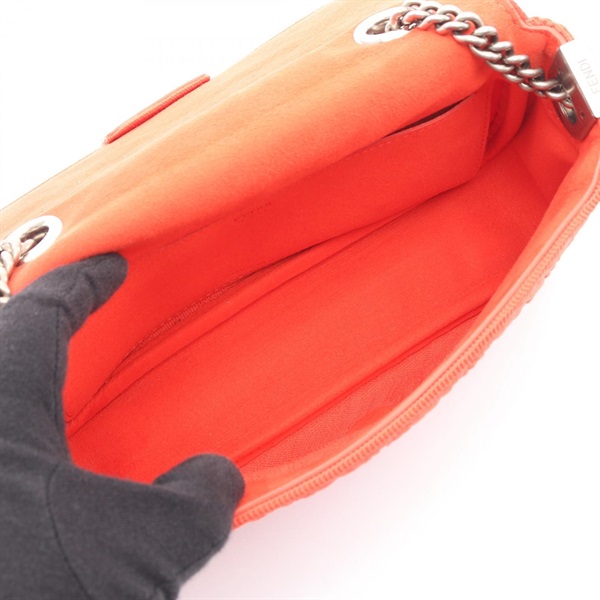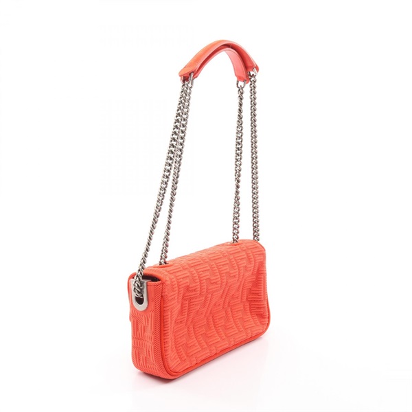 FENDI Baguette Chain Midi FF Pattern Shoulder Bag 8BR793 leather Fabric Red Used