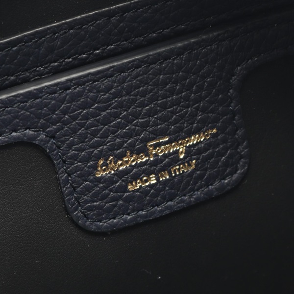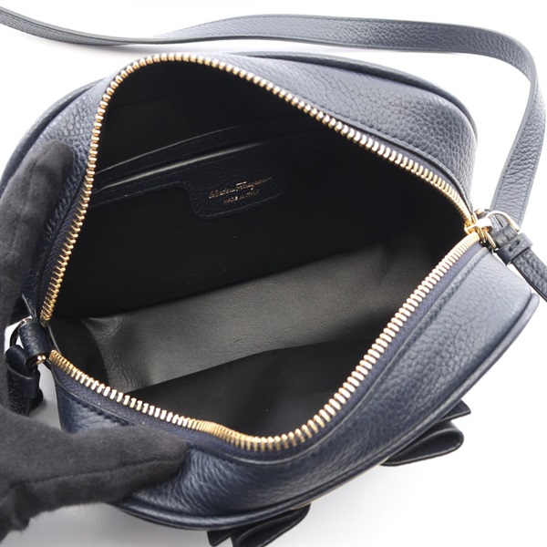 Salvatore Ferragamo Vara ribbon Shoulder Crossbody Bag leather Navy Used Women