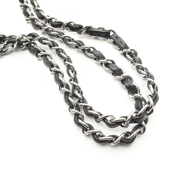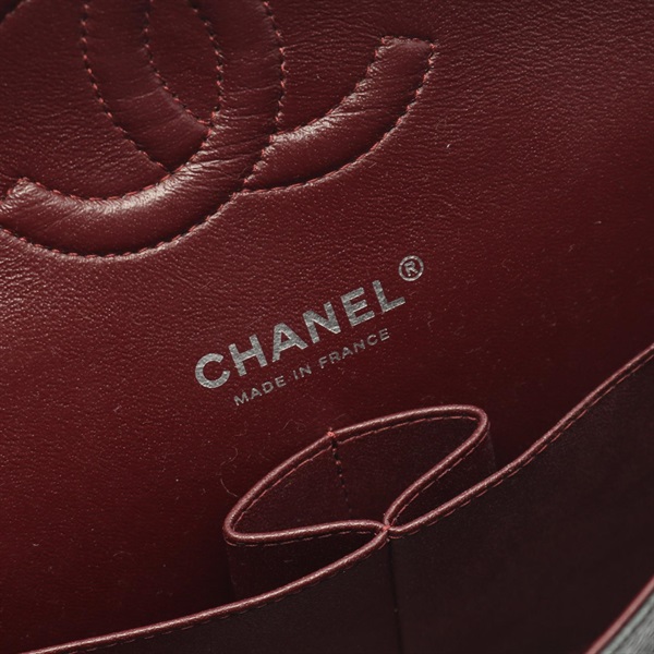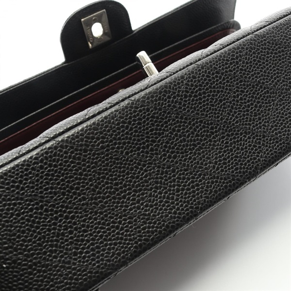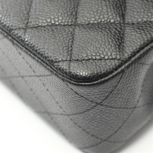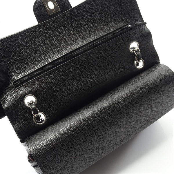 CHANEL Matelasse W flap Shoulder Bag A01112 Grained calf Black Used Women SHW CC