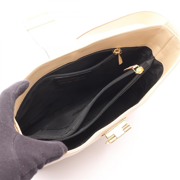 Salvatore Ferragamo Gancini Shoulder hand Bag leather Beige Used Women
