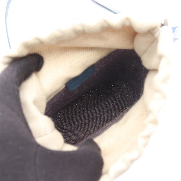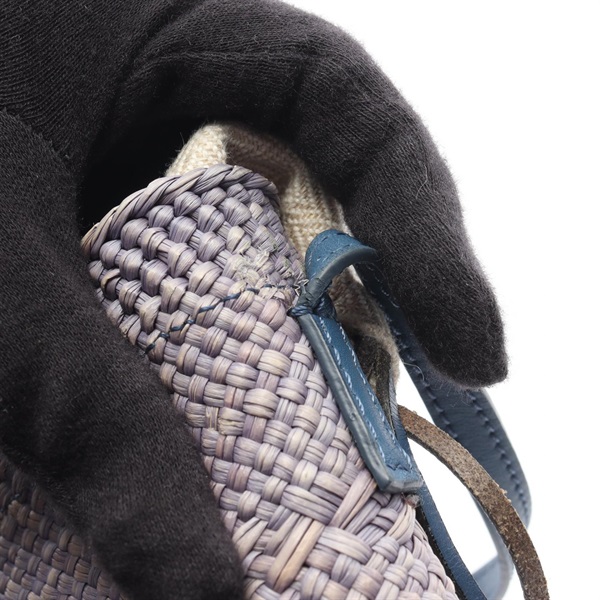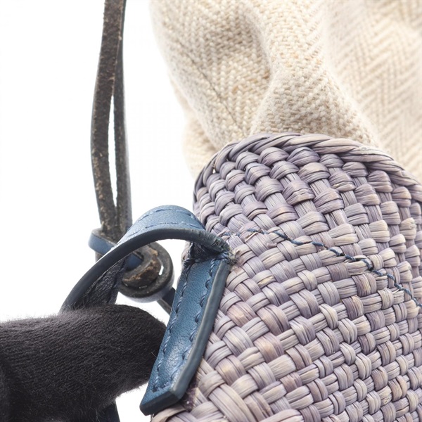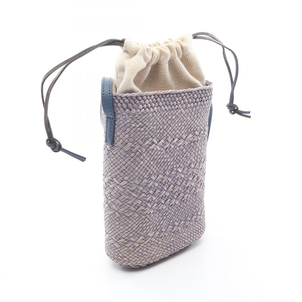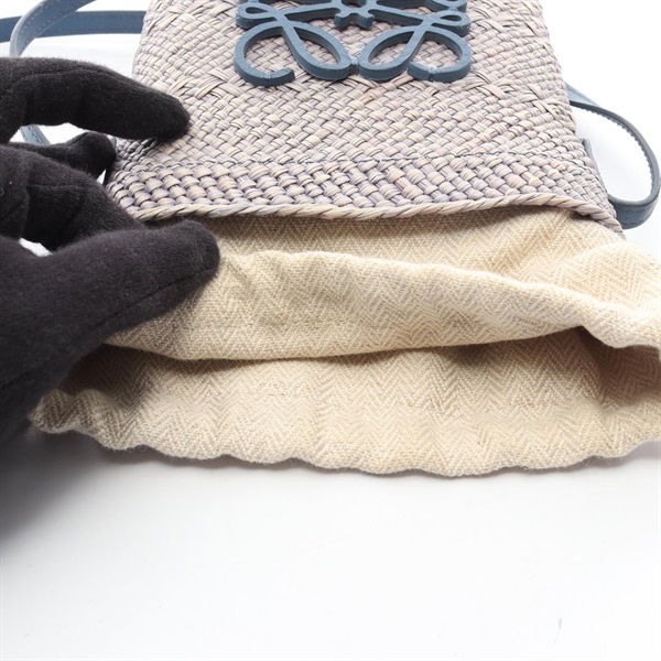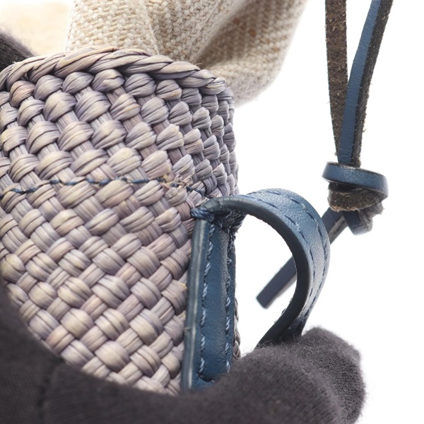 LOEWE Square pocket Shoulder Crossbody Pouch Bag leather Raffia Blue Used Women