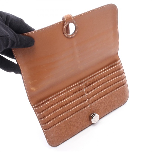 HERMES Dogon Long Bifold purse 061200CK Togo leather Brown Gold Used Women T SHW