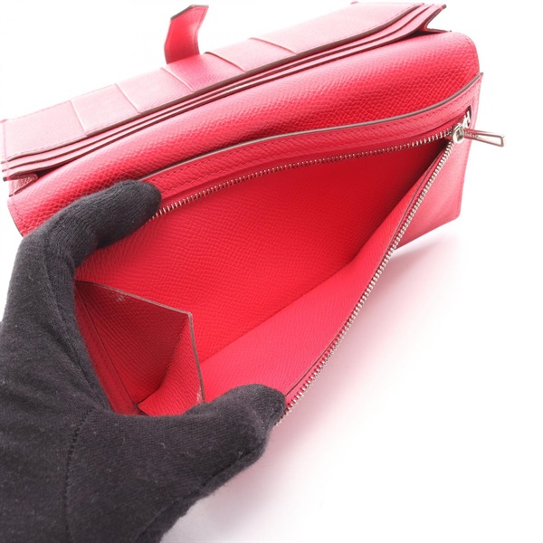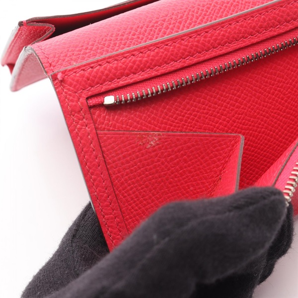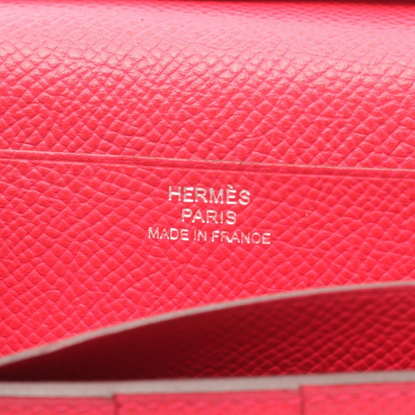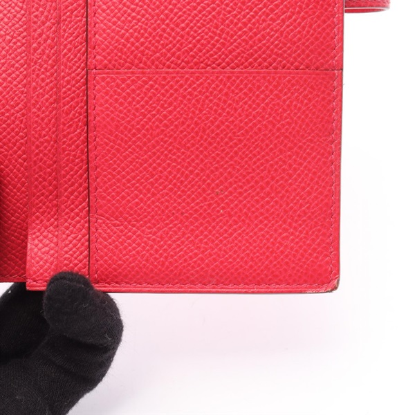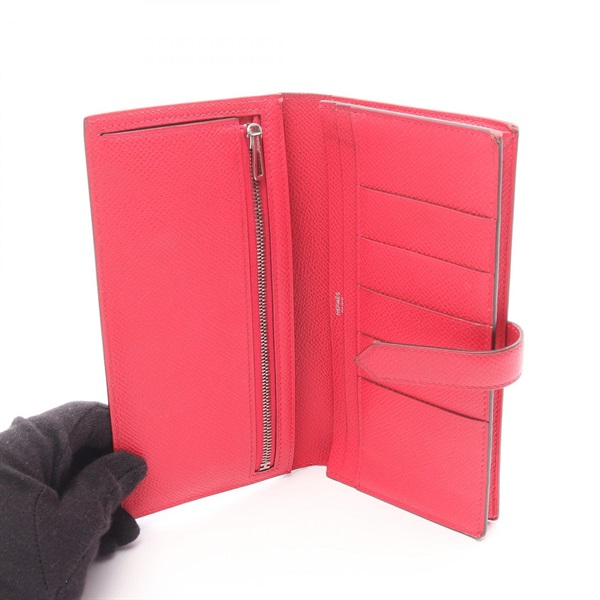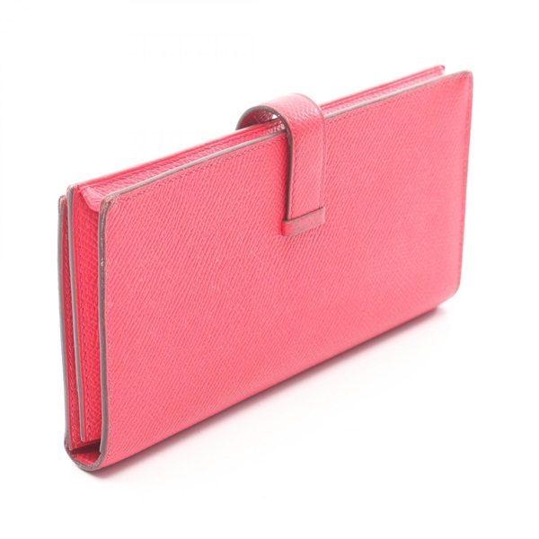 HERMES Bearn Soufflet Bifold Purse Wallet Epsom leather Pink Rose extreme Used D