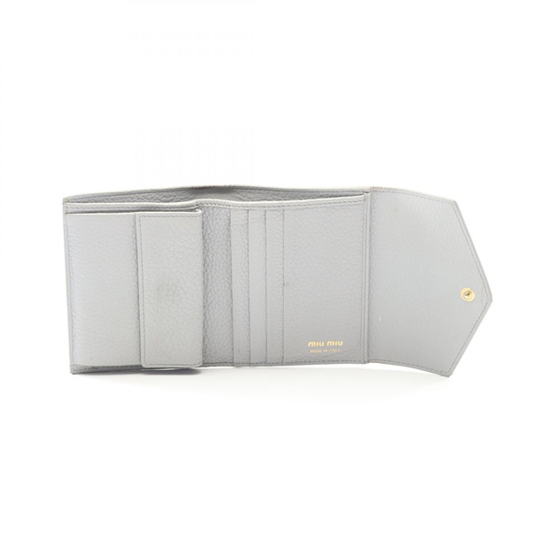 Miu Miu Tri-fold compact wallet purse 5MH040_2DT7_F0591 leather Gray Used Women