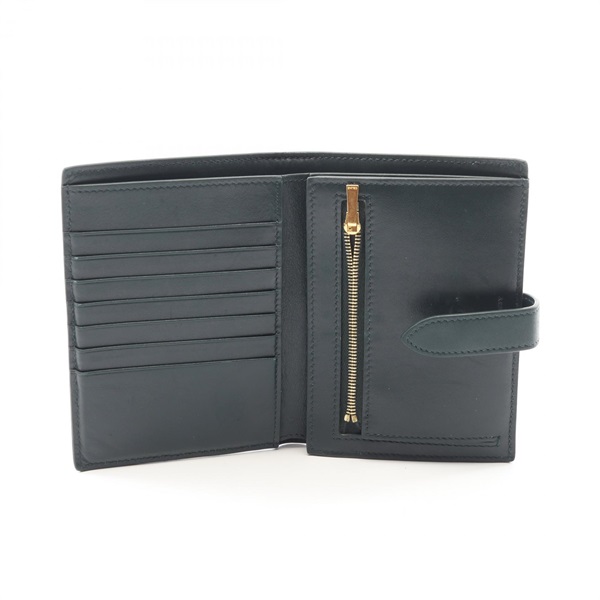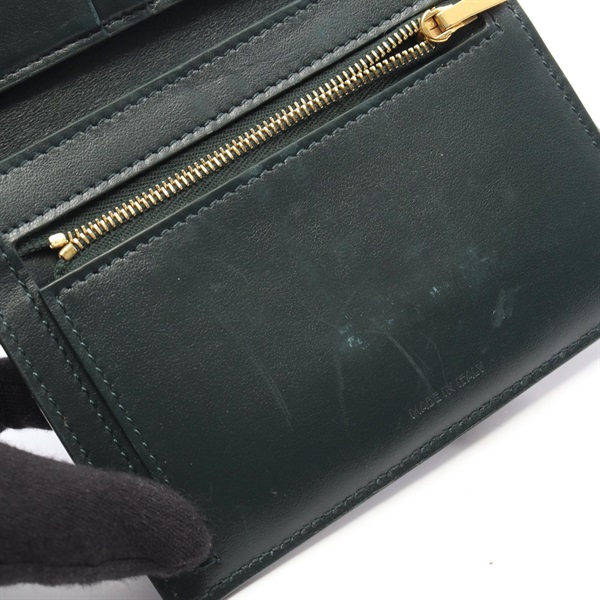 CELINE Medium Strap Bi-fold wallet 10B643BFP leather Green Used Women Logo