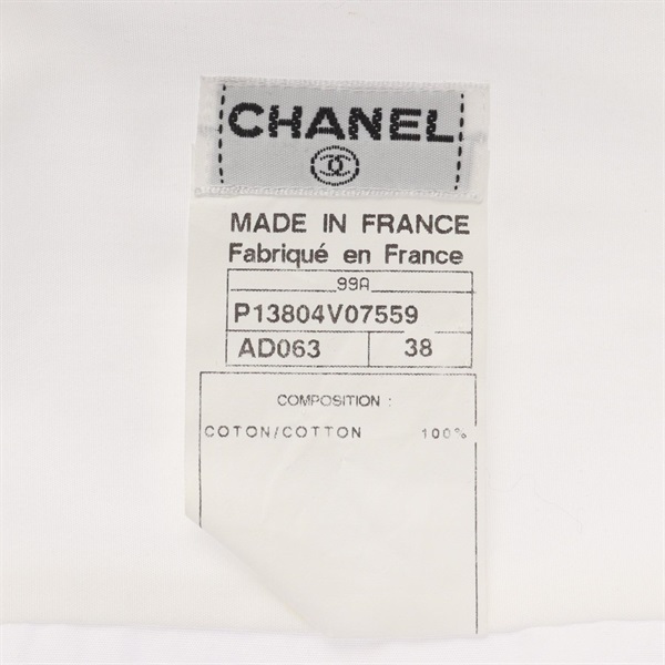 CHANEL COCO Mark pearl button shirt tops P13804vo7559 cotton White Used #38 CC