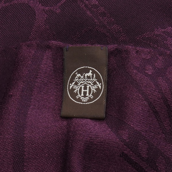 HERMES New Libris Stole wrap echarpe shawl silk cashmere Purple Used Women