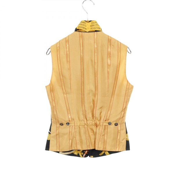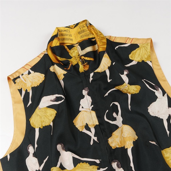 HERMES La Danse Vest sleeveless blouse tops silk Green Yellow Used Women #38
