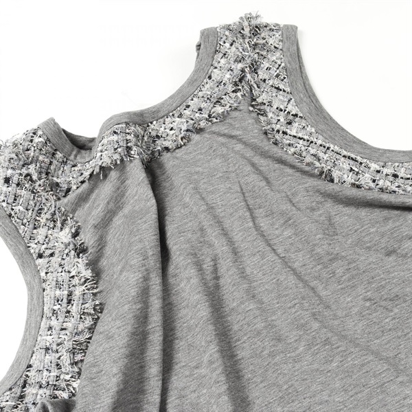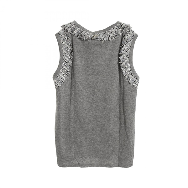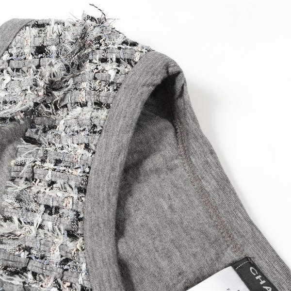 CHANEL Tweed Trim sleeveless tops P37918V27004 cotton Gray Used Women size 46