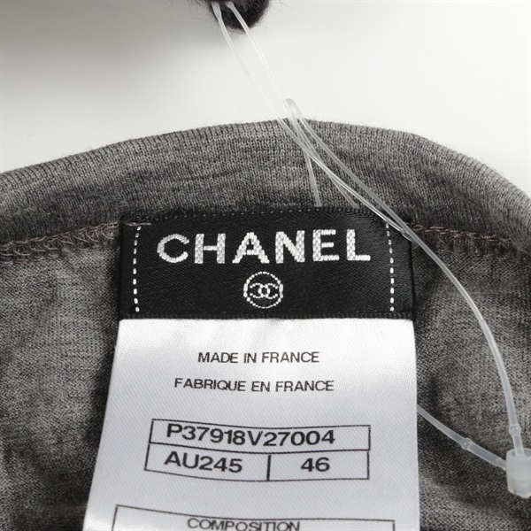 "CHANEL Tweed Trim sleeveless tops P37918V27004 cotton Gray Used Women size 46" is out of stock.
