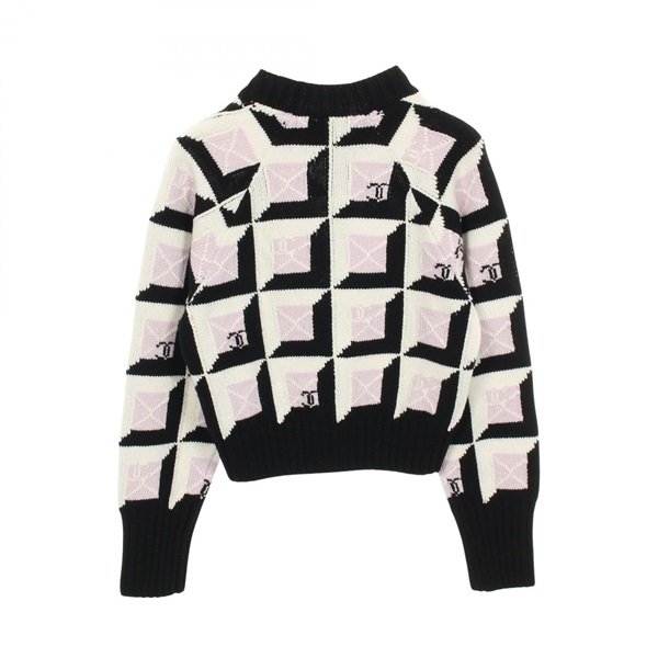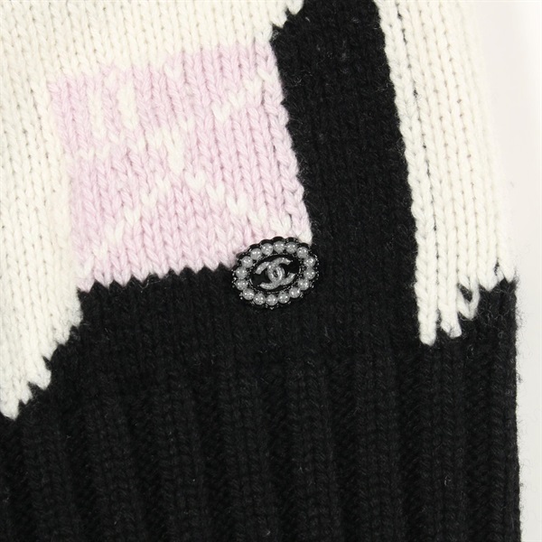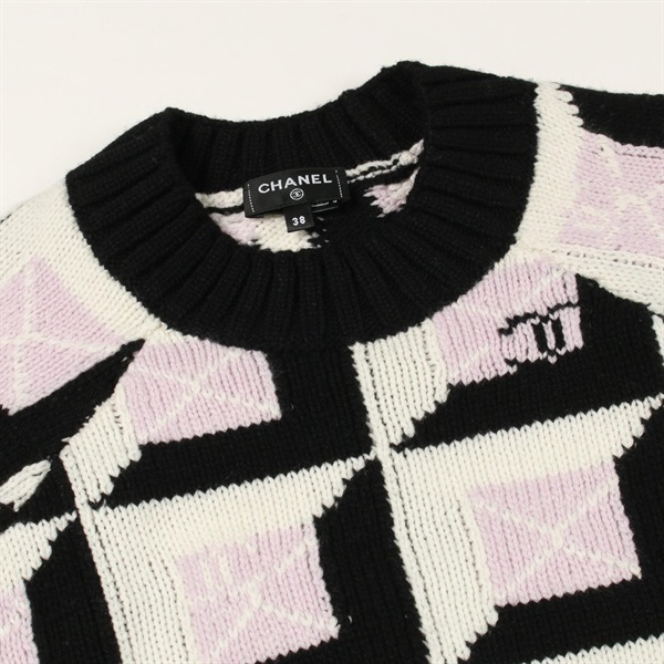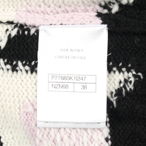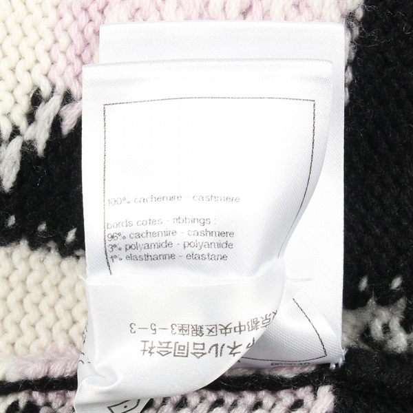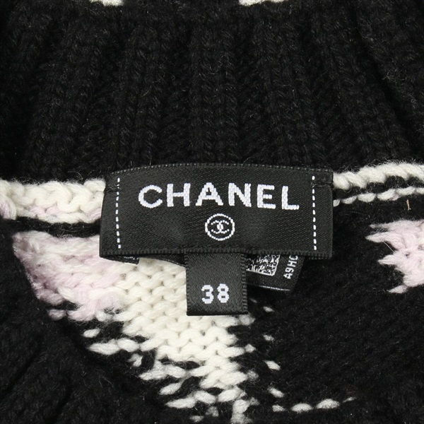 CHANEL COCO Mark knit cashmere Black White Purple #38 Used Women CC