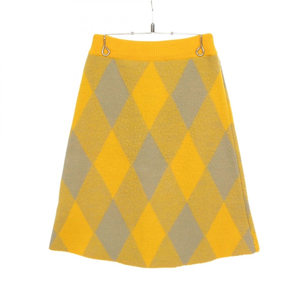 BURBERRY Checked pattern plaid Knitwear Skirt wool Yellow Gray size XXS