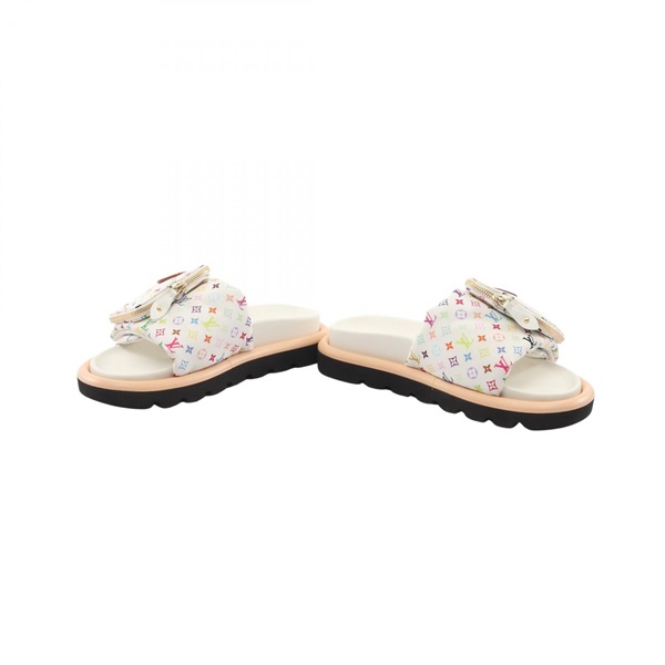 LOUIS VUITTON LV TM Pool Pillow Line Sandals Comfort Mule #38 Nylon White Used
