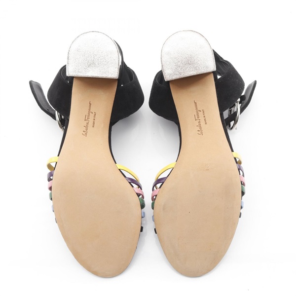 Salvatore Ferragamo Sandals Suede leather Black Multicolor #5.5 Used Women