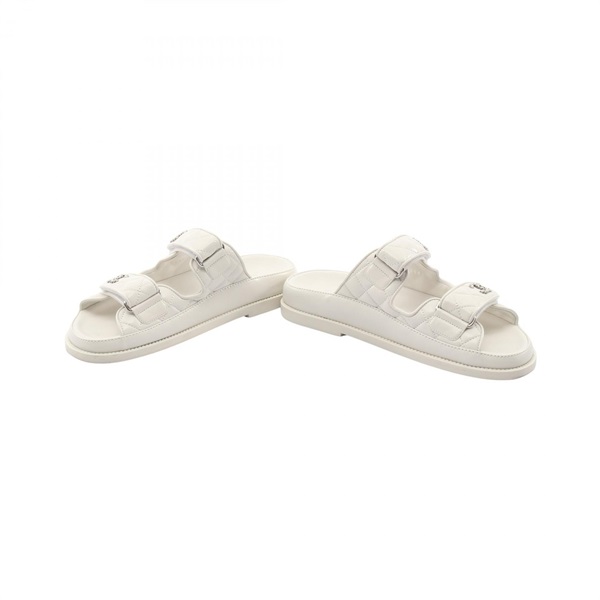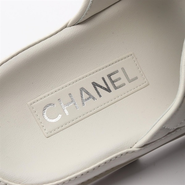 CHANEL Matelasse COCO Mark Sandals Shoes #37 G45507 leather White Used Women CC