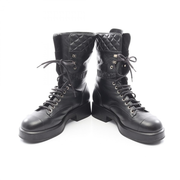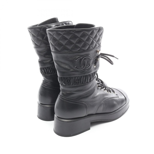 CHANEL COCO Mark Matelasse lace-up short boots #40C G37956 leather Black Used CC