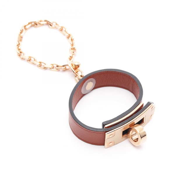 HERMES Kelly Glove holder leather Gold Plated Brown Used Women GHW